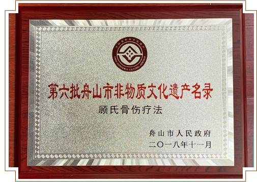 顧氏傷科發(fā)展至今,承祖?zhèn)髦g而博采眾長,已形成了獨有的治傷特色,同時將中醫(yī)辯癥施治和西醫(yī)治療靈活結合,多途徑、多形式地豐富了中醫(yī)單病種治療和中醫(yī)骨傷治療,特色??埔研纬闪藘?yōu)勢明顯、特色突出、持續(xù)發(fā)展的良好態(tài)勢。2018年,“顧氏骨傷療法”入選舟山市非物質(zhì)文化遺產(chǎn),目前正在申報省級非遺項目中。