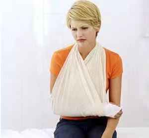 一旦發(fā)生脫臼,應囑病人保持安靜、不要活動,更不可揉搓脫臼部位。如脫臼部位在肩部,可把患者肘部彎成直角,再用三角巾把前臂和肘部托起,掛在頸上,再用一條寬帶纏過腦部,在對側腦作結。