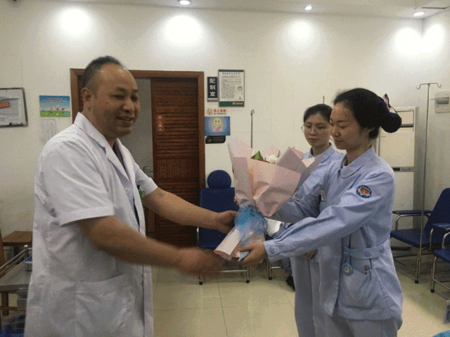 執(zhí)行院長(zhǎng)??瞪o護(hù)士們贈(zèng)送鮮花