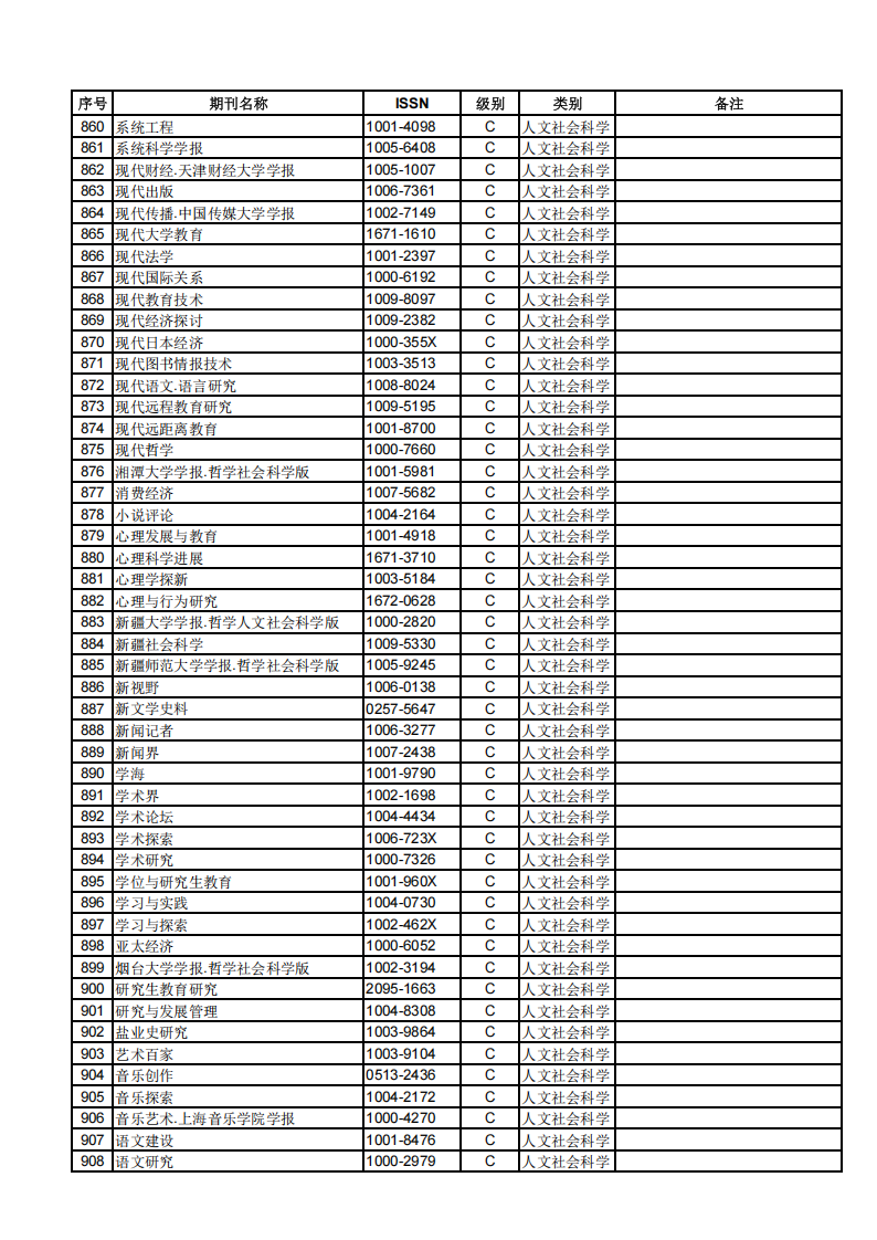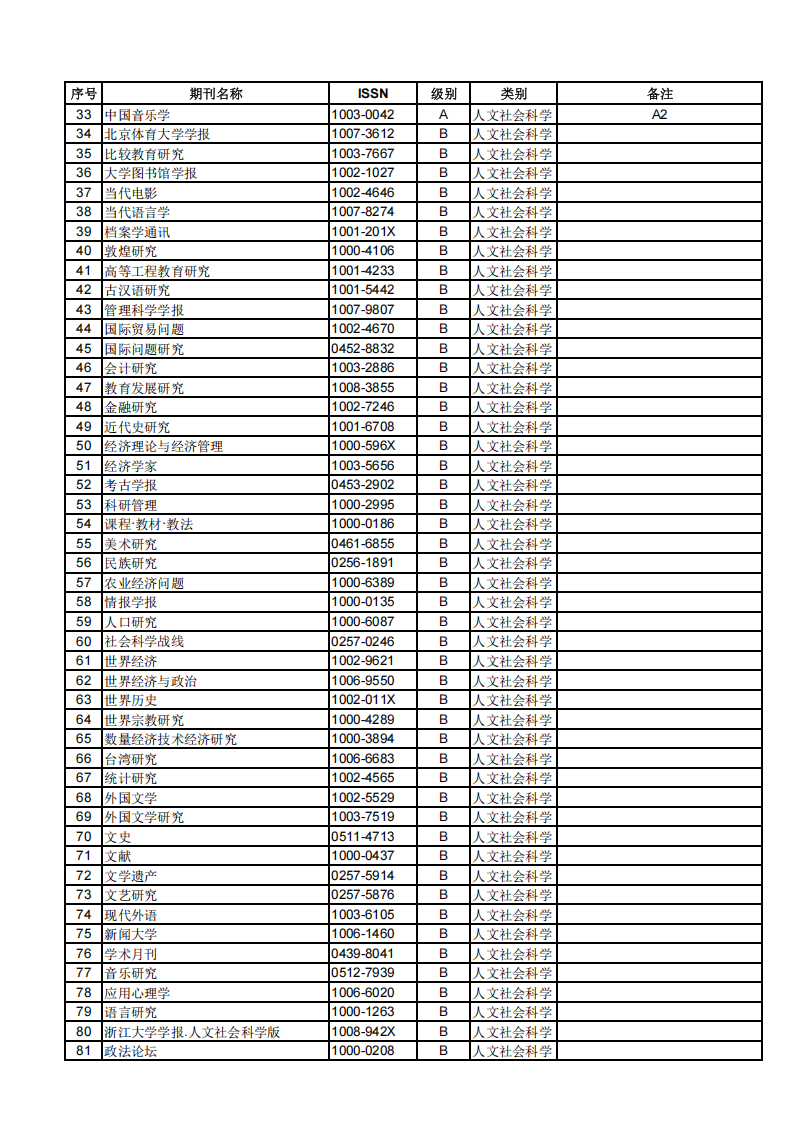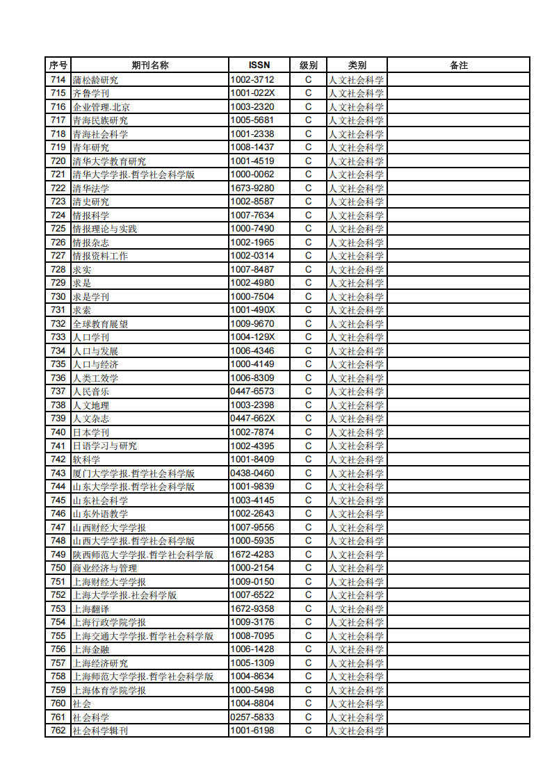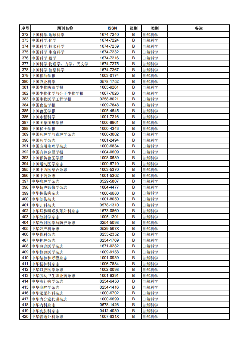 2、本目錄學術(shù)期刊分為A、B、C三類。A類包括SCI、EI、SSCI和A&HCI收錄的學術(shù)期刊論文以及人文社科類的權(quán)威期刊(A1類)20種和A2類學術(shù)期刊13種;B類411種(包括中國人民大學報刊復印資料(全文復印).學術(shù)類專題期刊92種),C類1270種。國內(nèi)一級出版社50個。