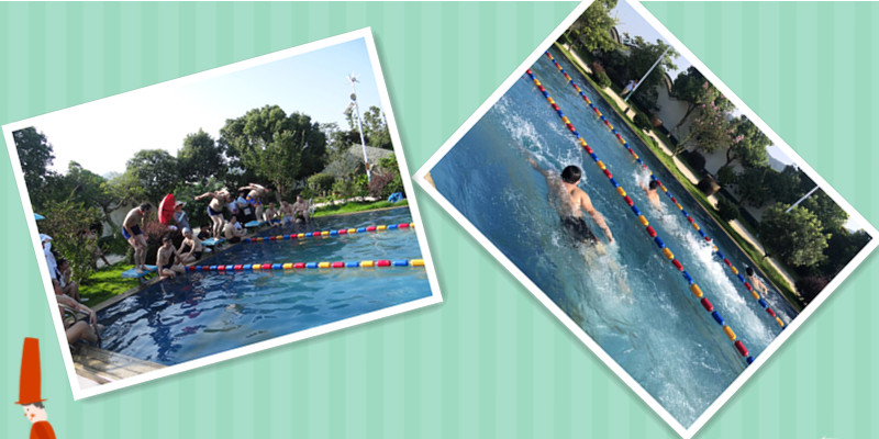 文化基地的活動(dòng)室內(nèi),因?yàn)楦刹柯毠兊牡絹?lái)充滿了歡聲笑語(yǔ)。室內(nèi)的活動(dòng)如此精彩紛呈,炎熱的夏天怎么可以少得了與水的親密接觸呢!鶴傳游泳健將們個(gè)個(gè)摩拳擦掌,準(zhǔn)備移師泳池一決高下。