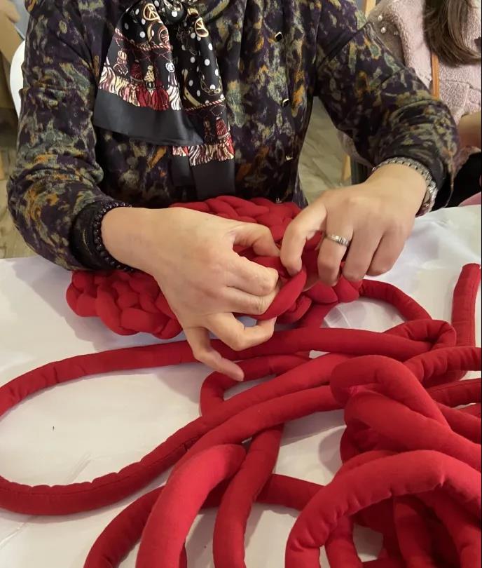 一場別開生面的手工編織茶話會在冬日午后溫情上演。對于大部分人而言,是初次體驗手工編織,不過在活動中,每個人都表現(xiàn)得熱情高漲,氛圍感十足。平日里在病房忙碌的身影全都化身一個個創(chuàng)作天才,看她們的編織架勢,完全不輸專業(yè)人士。